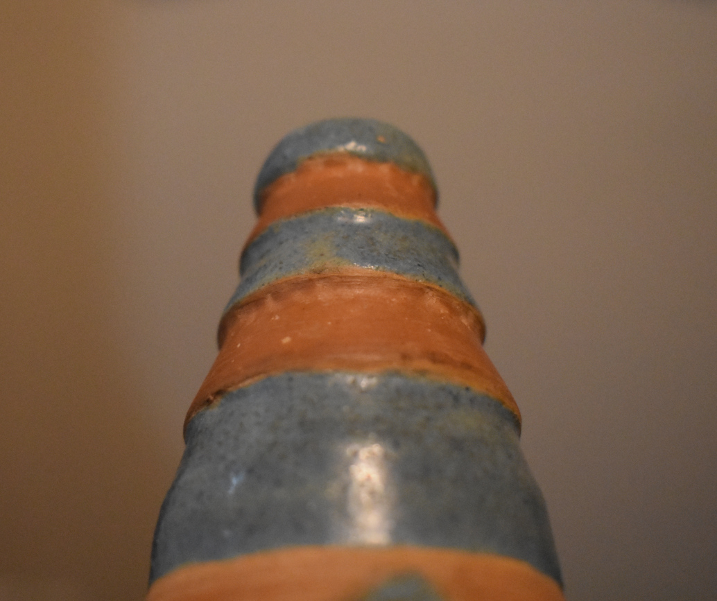 slight elevated from the body. There are some patches where he didn't brush on any glaze. The ribbed neck is really cool!