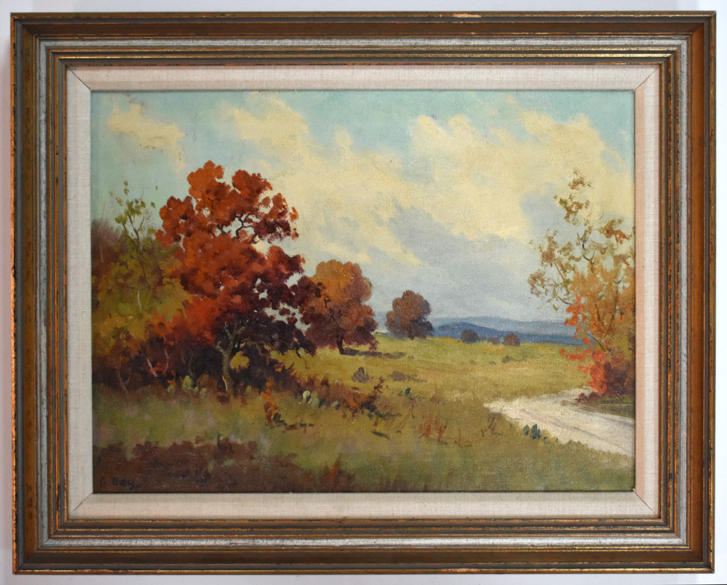 A painter of realistic landscapes reflecting a vanishing wilderness in America, Robert Wood (not to be confused with Robert E. Wood) is reportedly one of the most mass-produced artists in the United States. His painting became so popular he was unable to meet all of the demands, and many of his works were reproduced in lithographs and mass distributed as prints, place mats, and wall murals by companies including Sears, Roebuck. He was born in Sandgate, Kent on the south coast of England near Dover, the son of W.L. Wood, a famous home and church painter who recognized and supported his son's talent. In fact, he forced his son to paint by keeping him inside to paint rather than playing with his friends. At age 12, Wood entered the South Kensington School of Art. As a youth, he came to the United States in 1910, having served in the Royal Army, and he never returned to England. He traveled extensively all over the United States, especially in the West, often in freight cars, and also painted in Mexico and Canada. His itinerant existence took him to Illinois where he worked as a farmhand, to Pensacola, Florida where he married, briefly in Ohio, Seattle, Washington, and Portland, Oregon. In 1912, he was in Los Angeles, and In the late 1920s and early 1930s, in San Antonio, Texas, where he lived and in 1928 exhibited in the "Texas Wildflower Competition." From San Antonio, he gained a national reputation for his strong colored, dramatic paintings. Some of that prestige has been credited to his association with Jose Arpa, prominent Texas artist. Wood also gave art lessons, and one of his students was Porfirio Salinas. During this period, Wood sometimes signed his paintings G. Day or Trebor, which is Robert spelled backwards. In 1941 he went to California and painted numerous desert and mountain landscapes and coastal scenes. He lived in Carmel for seven years, and then moved to Woodstock, New York, but he soon returned to California, settling first in Laguna Beach, then San Diego, and finally in the High Sierras, where he and his wife built a home and studio near Bishop and lived until his death in 1979. Robert Wood was born March 4, 1889, in Sandgate, England, a small town on the Kentish coast not far from the white cliffs of Dover. His father, W. J. Wood was a successful painter who recognized Robert's unusual talent. At the age of twelve, his father enrolled Wood in art school in the small town of Folkestone. He then attended the South Kensington School of Art. While attending art school, Wood won four first awards and three second awards, one each year, a record. In 1910 after service in the Royal Army, nineteen-year-old Wood and his friend, Claude Waters, immigrated to America. Initially, he settled in Illinois and worked as a hired hand on a farm belonging to Water's uncle. He would then strike out on his own, living the life of an itinerant painter. Wood traveled as a hobo, hopping freight trains and selling or bartering small paintings to support him along the way. When times were hard, he worked at whatever job was available. In this manner, he saw most of the United States and fell in love with rural America. By 1912, Wood visited Los Angeles for the first time, arriving on the day of the Titanic tragedy. Later that year, he had met, courted and married young Eyssel Del Wagoner in Florida. The couple moved to Ohio where a daughter, Florence, was born. During World War I, the family moved to Seattle where a son, John Robert Wood, was born in 1919. In the early 1920's, the young Wood family was almost constantly on the move. They stayed for short periods in Kansas, Missouri, California and for a longer time in Portland, Oregon, where Wood's friend Claude Waters had settled. Wood's seemingly endless wanderings disrupted his family life and delayed his development as a painter. However, through his travels he developed an appreciation for the American landscape that would inspire him for the rest of his career. Although aware of the current movement away from traditional realism in American art, he elected to travel that solitary path and remain true to his own vision of America's grandeur and beauty poetically translated through his landscape and seascape paintings. In 1923, the Wood family discovered the beautiful city of San Antonio, Texas and it was there that he and his family would finally settle. He studied briefly at the San Antonio Art School with Spanish colorist Jose Arpa y Perea (1860-1952), who had arrived in San Antonio that same year. In the latter part of the 1920’s, Jose Arpa’s influence quickly became evident. Wood after several years of experimentation was becoming a fine easel painter, capable of great subtlety with a new mature original style. Like Texas painters Robert Onderdonk (1853-1917) and his son Julian Onderdonk (1882-1922), Robert Wood concentrated on the distinctive Texas landscape with its Red Oak trees and wildflowers that covered the hill country landscape. He developed a reputation for his scenes of Blue Bluebonnets, the state flower. In the spring, the Texas prairie is covered with wildflowers, especially in the hill country surrounding San Antonio and Austin. Wood incorporated native stone barns and rough wood farmhouses that added authenticity and romance to his compositions. In 1925, Wood was divorced from his wife. In 1932, he moved to the famous scenic loop on San Antonio's outskirts. While still living in Texas, he took extensive western sketching trips that brought him to California. It is evident that his 1930’s California and Texas works started to show his awareness of the then popular California Plein-Air movement. These more mature works are distinguished by a fine sense of detail reminiscent of late-19th-century American landscape painters laced with the colorful influence of American and French impressionism. With paintings being shipped to dealers across the continent, Wood’s reputation with collectors was growing nationally. It s