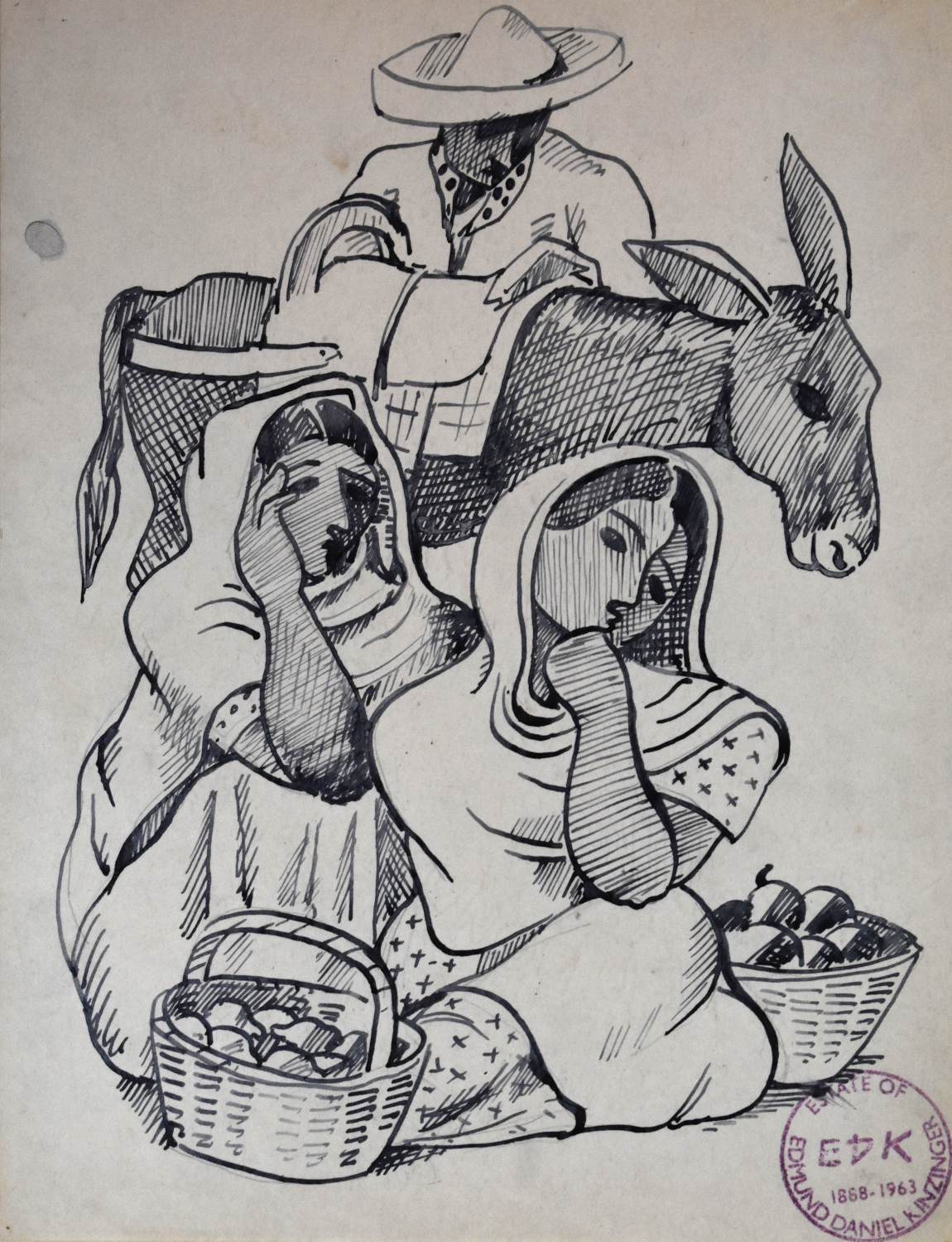 Fleeing Nazi Germany, Kinzinger came again to the United States and in 1935 became chairman of the art department at Baylor University, Waco, a position he would hold for the next thirteen years. In the years 1939-42), Kinzinger attended summer sessions at the University of Iowa City, and his dissertation--a series of paintings on a Mexican theme--earned for him in 1942 the first doctorate in fine arts conferred by the University of Iowa. Beginning in 1944, Kinzinger painted summers in Taos. Troubled by depression for a number of years, Kinzinger was divorced in 1947 and stopped painting in 1948 when he moved to live with his son in Delavan, Wisconsin. After 1960 he was a resident of North Carolina where he died of a stroke. Exhibitions: Galerie Pierre, Paris (1933 one-man); Bloomsbury Gallery, London (1933 one-man); Rouillier Gallery, Chicago (1935); Art Institute of Chicago (1935 one man,1938); Texas Centennial Exposition, Dallas (1936); Greater Texas and Pan-American Exposition, Dallas (1937); Dallas School of Creative Arts (1937); Witte Memorial Museum, San Antonio (1937 and 1944 one-man); Annual Southeast Texas Artist Exhibition, Houston (1937,1938,and 1939 honorable mentions); Museum of Fine Arts, Houston (1937 one-man); National Exhibition of American Arts, Rockefeller Center, New York (1937-38); Three German Painters (1938), Two Hundred Years of American Art (1946), Dallas Museum of Fine Arts; Golden Jubilee Exposition, State Fair of Texas, Dallas (1938); American Art Today Exhibition, New York World's Fair (1939); Dallas Museum of Fine Arts (1939 and 1942 one-man, 1945, 1971); Golden Gate International Exposition, San Francisco (1939-40); Corcoran Gallery of Art, Washington, D.C. (1939); Annual Exhibition of West Texas Artist, Fort Worth Museum of Art (1939, 1940 prize); Lone Star Printmakers Circuit Exhibition (1940-42); Texas General Exhibition (1940-42, 1943 award, 1944-45, 1947 award); Southern States Art League Annual Exhibition (1941-42); Texas-Oklahoma General Exhibition (1941); Annual Texas Artists Circuit Exhibition (1943 prize, 1944 honorable mention,1945,1948); Annual Texas Print Exhibition, Dallas (1943 award, 1944, 1947 award); International Exhibition of Prints and Drawings, Elisabet Ney Museum, Austin (1943); Texas Panorama Exhibition, Dallas Museum of Fine Arts (1943) and American Federation of Arts (1944 traveling exhibition); Corpus Christi Caller-Times Annual Exhibition (1944); Baylor University, Waco (1946,1949); Blue Door Gallery, Taos (1947 one-man ); Texas Painting and Sculpture: The 20th Century, Owen Art Center, Southern Methodist University, Dallas (1971 traveling exhibition); Reuchlinhaus, Pforzheim, Germany (1988 one-man); E.D.K.--- The Early Years: 1913-1935, The Gallery, Southern Methodist University, Dallas (1992); Edmund Kinzinger---Cubist and Other Works: 1910-1950, Art Center, Waco (1992); Art for History's Sake: The Texas Collection of the Witte Museum, San Antonio (1993); Hock Shop Collection: Rediscovering Texas Artist of the Past, Museum of the Big Bend, Alpine (1997); Detroit Institute of Arts; University of Iowa, Iowa City; University of Minnesota, Minneapolis; University of Oklahoma, Norman; Chicago, Grand Rapids, Michigan, and St. Paul, Minnesota; Berlin, Munich, Paris, and Stuttgart.