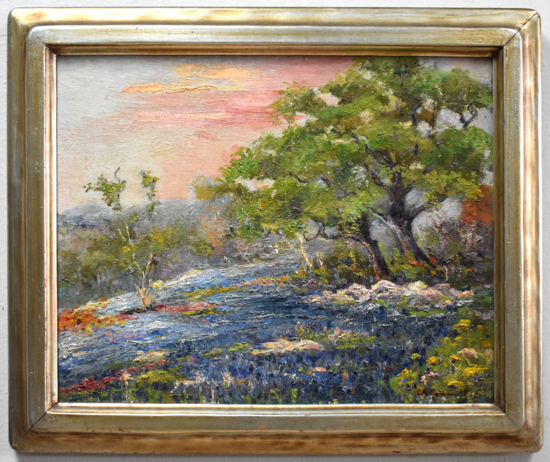 Mrs. William Test Pancoast San Antonio , Landscape, still life, street-scene painter, journalist.Pancoast was born in Lafayette, Lousiana, and educated in new Orleans before coming to San Antonio about 1888. During the 1920s and 1930s she worked as a journalist for the San Antonio Express and afterward the San Antonio Light while taking, lessons from Jose Arpa and Wilson K. Nixon. In the summer of 1939 she instructed in the art colony associated with the Sul Ross Summer School of Art at Alpine. A part-time but prolific painter, Pancoast died in San Antonio.Exhibitions: Texas Artists Exhibition, San Antonio Art League (1926)' San Antonio Artists Guild (1927); Edgar B. Davis Competition, San Antonio (1928-1929); Menger Hotel, San Antonio (1929 one woman) Southern States Art League Annual Exhibition (1929-1930); San Antonio Local Artists Annual Exhibition (1930-32, 1936-37); Annual Texas Artists Exhibition, fort Worth (1930, 1933-34); Texas Federation of Women's Clubs, Denver (1930); Annual Texas Artists Circuit Exhibition (1932-33); Bright Shawl Gallery, San Antonio (1934 one woman); San Antonio Art League (1947); River Art Group, San Antonio (1948-1950); Coppini Academy of Fine Arts Exhibition, San Antonio (1952, 1954, 1956, 1958-59); Hock Shop Collection; Rediscovering Texas Artist of the Past, Museum of the Big Bend, Alpine (1997); Visions of Texas: 1900-1950, Art Museum of Southeast Texas, Beaumont (1997); Annual Exhibition of Artist, Dallas Woman's Forum: Annual Cotton Palace Exhibition, Waco.Collection: Witte Museum and Daughters of the Republic of Texas, San Antonio. Clara Caffery Pancoast was a landscape, still life, and street scene painter, whose most sought after work were depictions of historic buildings around San Antonio and nearby missions and ruins of the Alamo. Although she was a prolific artist, completing over 500 oils, etchings and watercolors, she was a full-time journalist in the 1920s while she was raising a family. She was born in Louisiana and grew up on a plantation. She took her basic education at the Home Institute in New Orleans, where she also too art training. About 1888, she moved to San Antonio, and there married William Test Pancoast in 1891. While raising two daughters, she became a professional newspaper journalist, serving as editor of the San Antonio Express from 1916 to 1926 and editor of the San Antonio Light from 1927 to 1937. She became the first president of the San Antonio Business and Professional Women's Club and was active in many art groups including the Palette and Chisel Club and San Antonio Art League. While working at her journalism career, she was a 'weekend' painter. She studied art from Jose Arpa and Wilson K. Nixon and also spent time in Alpine in the art colony and for one year taught at the Sul Ross Summer School of Art in Alpine. She also sketched in Mexico and West Texas, and painted many scenes along the San Antonio River. Exhibition venues included the Texas Fine Arts Association, Texas Artists' Exhibition, Edgar B. Davis Competition and Southern States Art League.