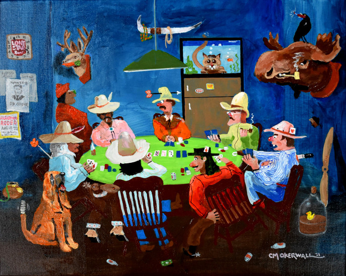 Conrad CM Okerwall, western artist, is a graduate of The American Academy of Art, Chicago. CM owned his own advertising agency in the Chicago area. He has been painting in the western/cowboy genre for over 50 years. His paintings most always tell a story, sometimes with a little cowboy humor. CM’s paintings are owned by collectors internationally.