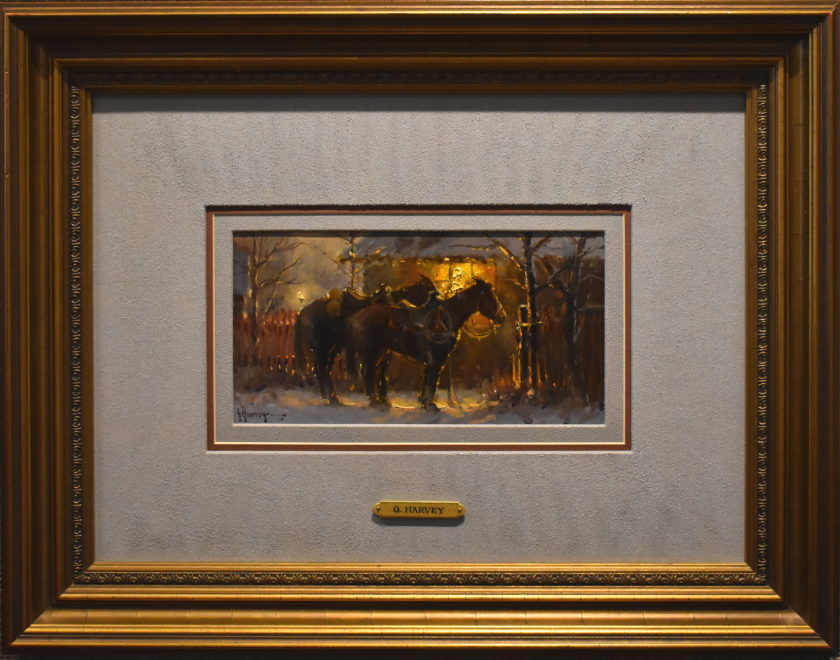 Whether drawing inspiration from his own deeply rooted Texas heritage, the human experience is fully revealed in his art. He is often credited with technical brilliance as his goal is to approach each subject with discipline, maturity and artistic integrity. Yet beyond this vast and well-schooled knowledge, is a deeper set of values, an inner luminosity that transcends time and place, evoking familiar sights, sounds, moods and emotions. Lyndon Johnson introduced his works to John Connally who presented a G Harvey original to the governors of four Northern Mexican states. He celebrated a one-man show at the Smithsonian Institution entitled The All-American Horse.