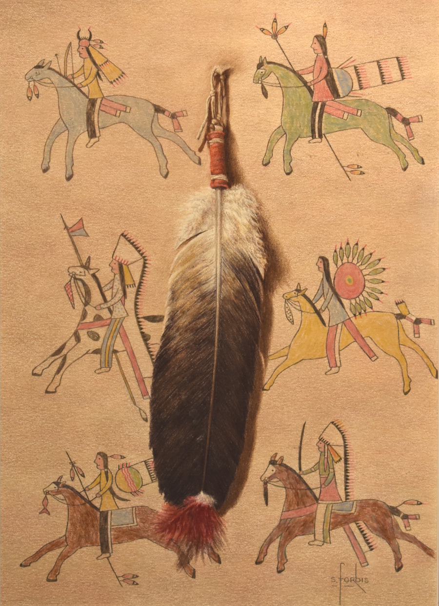 Steve Forbis is known for genre-Indian, figure, animal. Colored pencil artist. Buffalo, Longhorns, Indians, Native Americans.