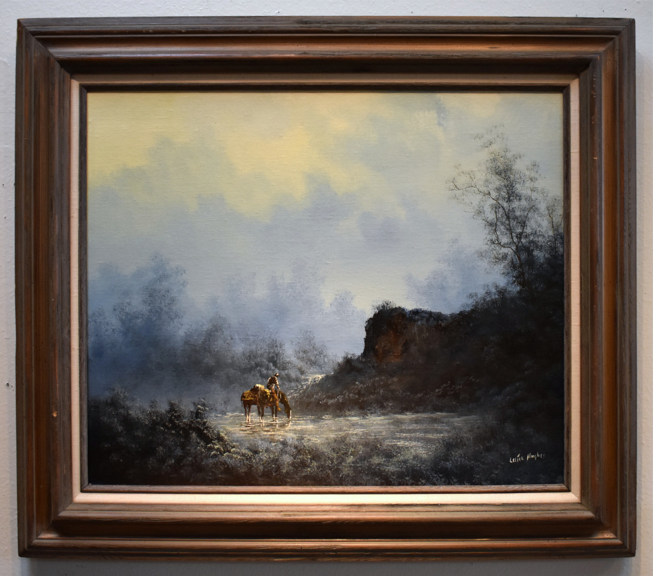 From El Paso, Texas, Lester Hughes was a self-taught artist who painted imaginative landscapes of the Southwest, often with horse-back riding cowboys intent on their duties. President Ronald Reagan purchased over a dozen paintings by Hughes, and some of them hung in the White House during Reagan's tenure.