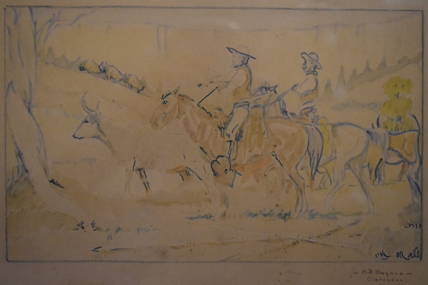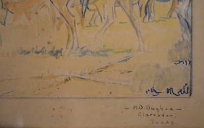 Bugbee was an illustrator of books and magazines, and a painter of historical portraits, portraying ranch life.  He produced illustrations for J. Evetts Haley's Charles Goodnight, and Cowman and Plainsman and worked with Haley in the production of several other historical works.  Bugbee's illustrations often appeared on the covers of the Panhandle-Plains Historical Review and in Country Gentleman, Quarter Horse Journal, Progressive Farmer, The Cattleman, and Field and Stream magazines.  He taught at the Palo Duro School of Art, and became part-time curator of the Panhandle-Plains Historical Museum in Canyon in 1951.  Harold Bugbee died in Clarendon, survived by his second wife, Olive Vandruff Bugbee.