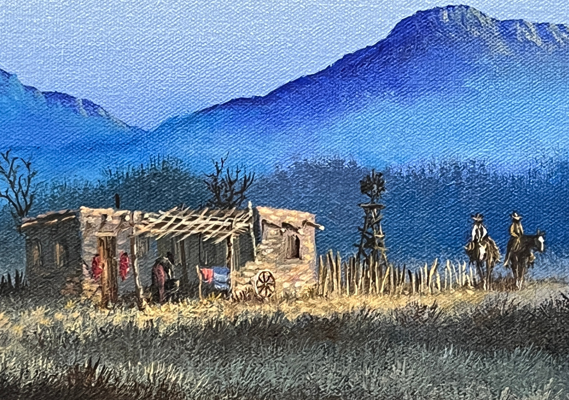 From El Paso, Texas, Lester Hughes was a self-taught artist who painted imaginative landscapes of the Southwest, often with horse-back riding cowboys intent on their duties. President Ronald Reagan purchased over a dozen paintings by Hughes, and some of them hung in the White House during Reagan's tenure.