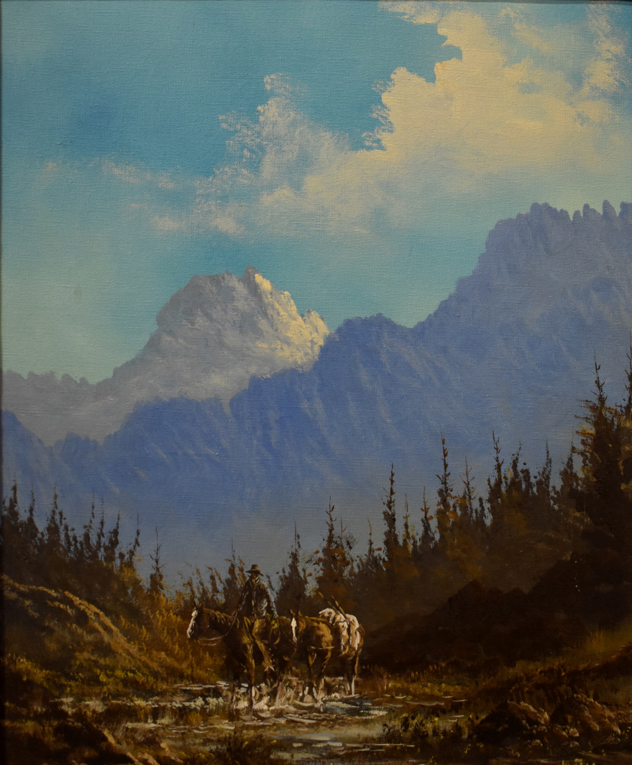 From El Paso, Texas, Lester Hughes was a self-taught artist who painted imaginative landscapes of the Southwest, often with horse-back riding cowboys intent on their duties. President Ronald Reagan purchased over a dozen paintings by Hughes, and some of them hung in the White House during Reagan's tenure.