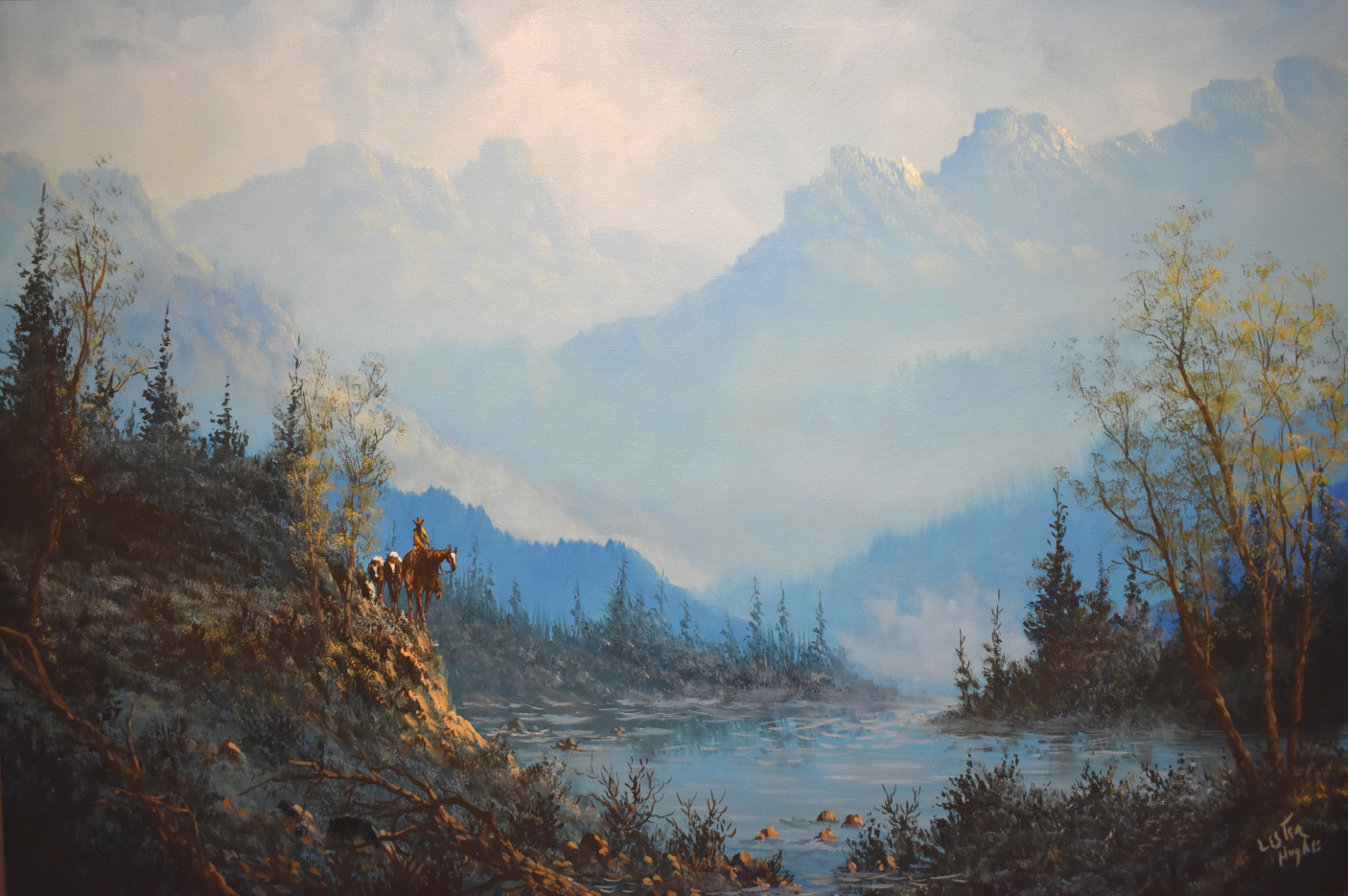 From El Paso, Texas, Lester Hughes was a self-taught artist who painted imaginative landscapes of the Southwest, often with horse-back riding cowboys intent on their duties. President Ronald Reagan purchased over a dozen paintings by Hughes, and some of them hung in the White House during Reagan's tenure.